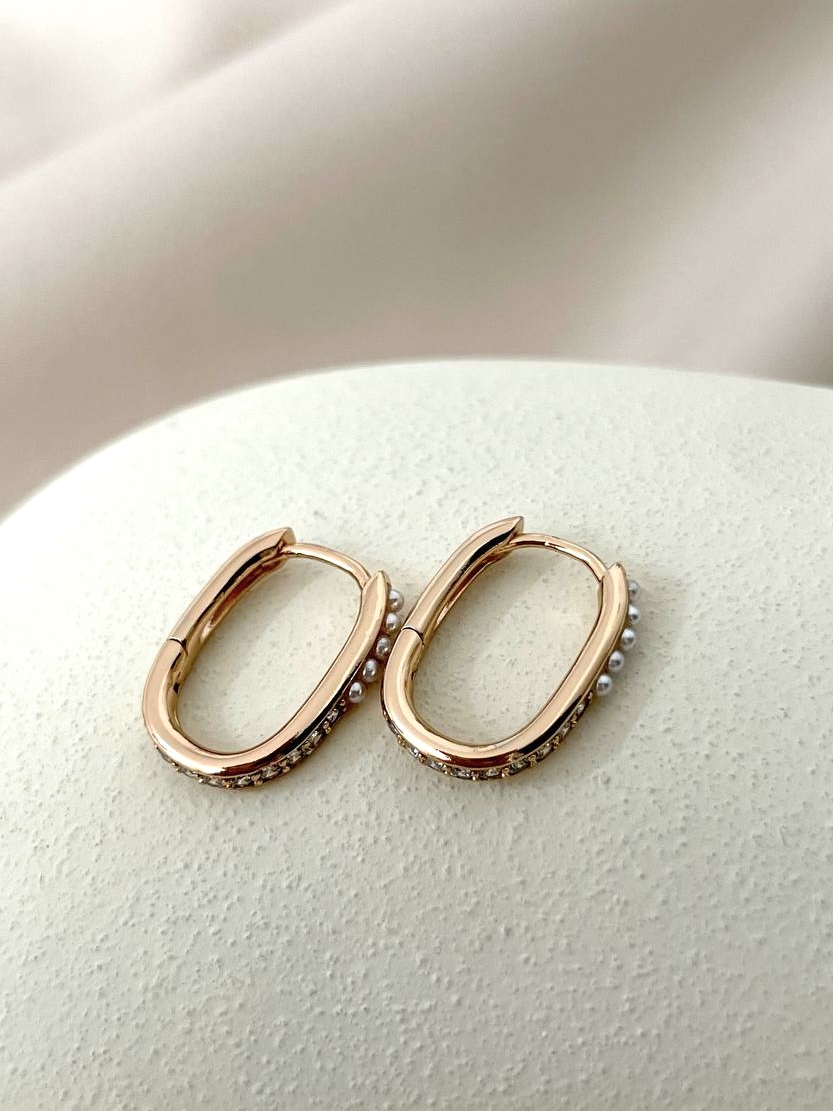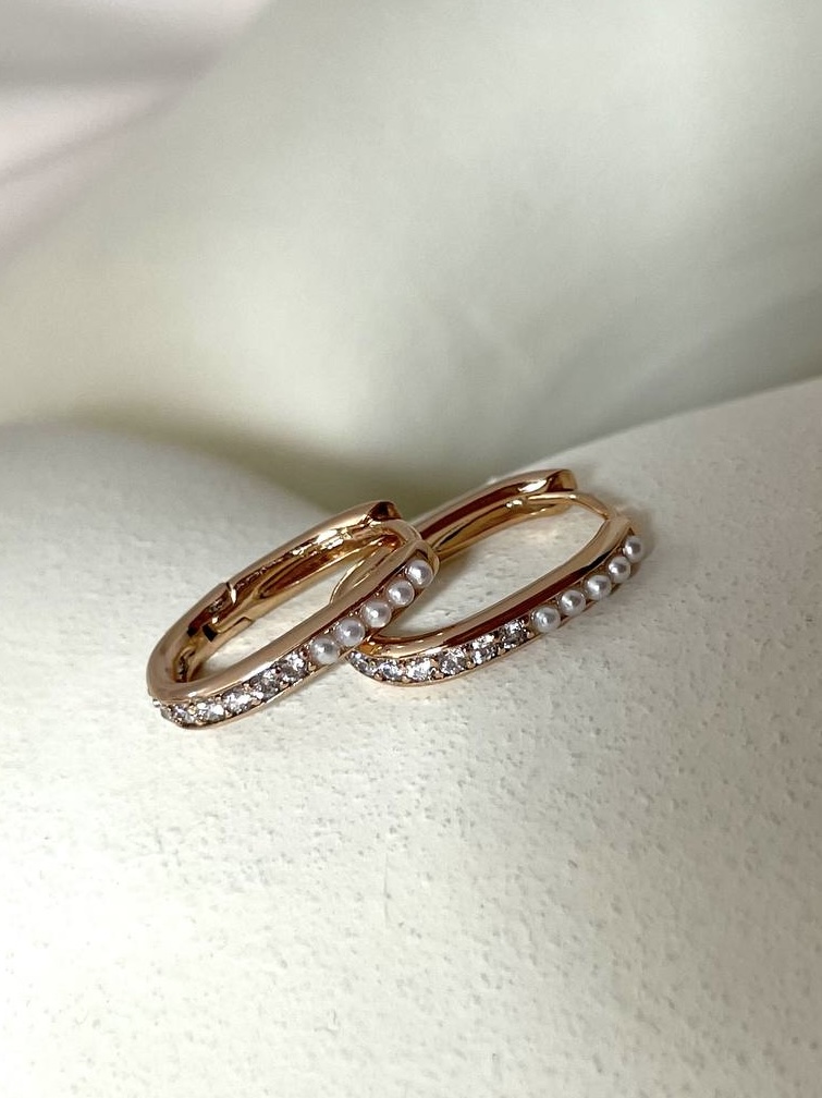 گوشواره مستطیل نگین و مرواریدی ژوپینگ