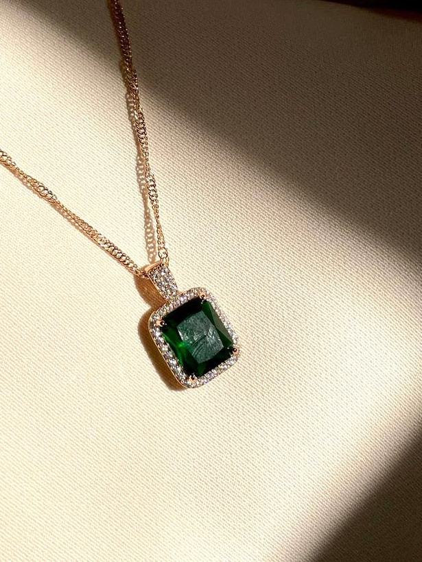پلاکزمردی مستطیل با زنجیر پیچ ژوپینگ