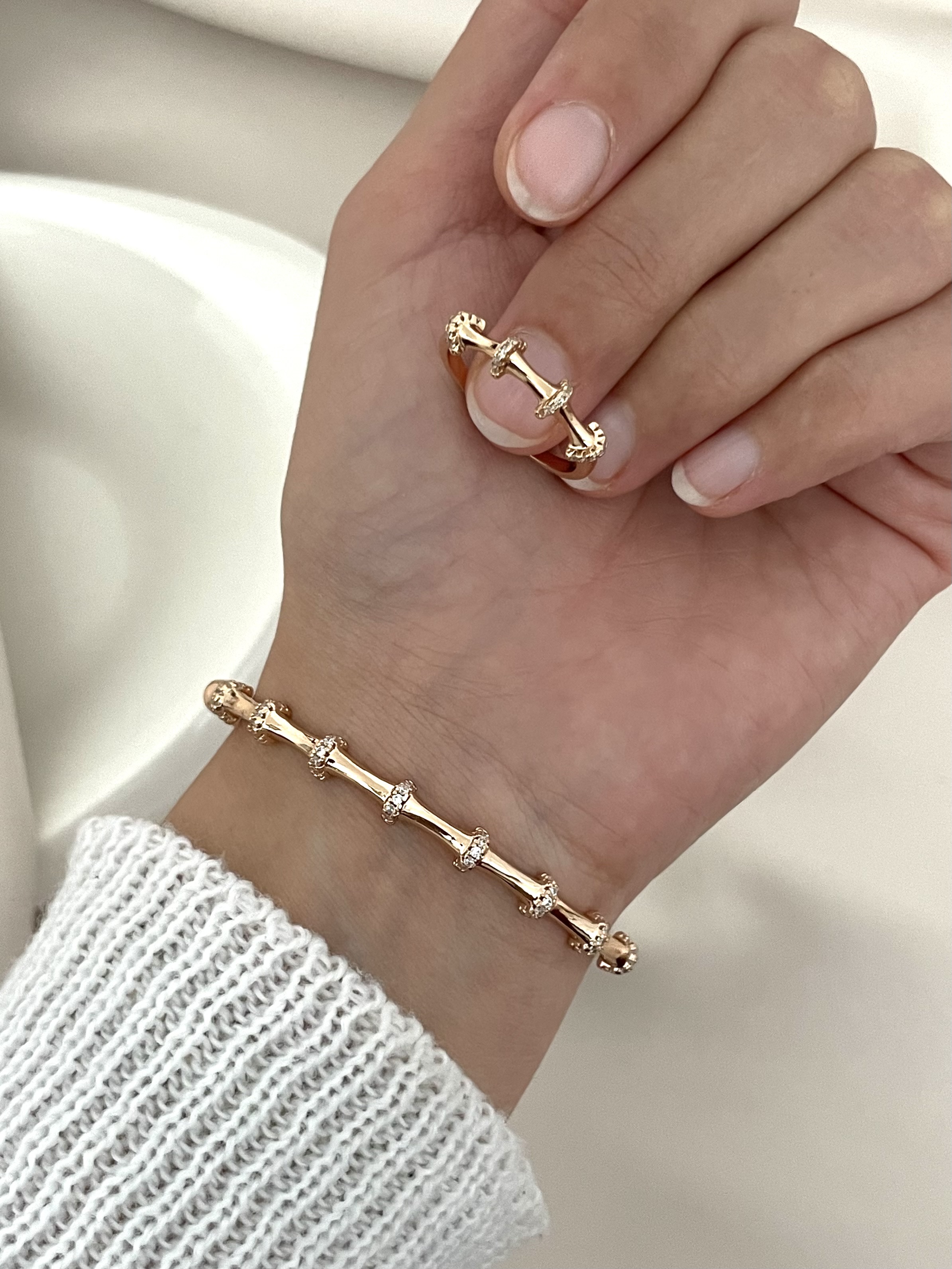دستبند النگویی طرح طلا بامبو ژوپینک💛 آبکاری طلا ۱۸k ورنگ ثابت ضدحساسیت و بسیار باکیفیت انگشتر ست دستبنداز دسته انگشتر به سبد خریدتون اضافه کنید
