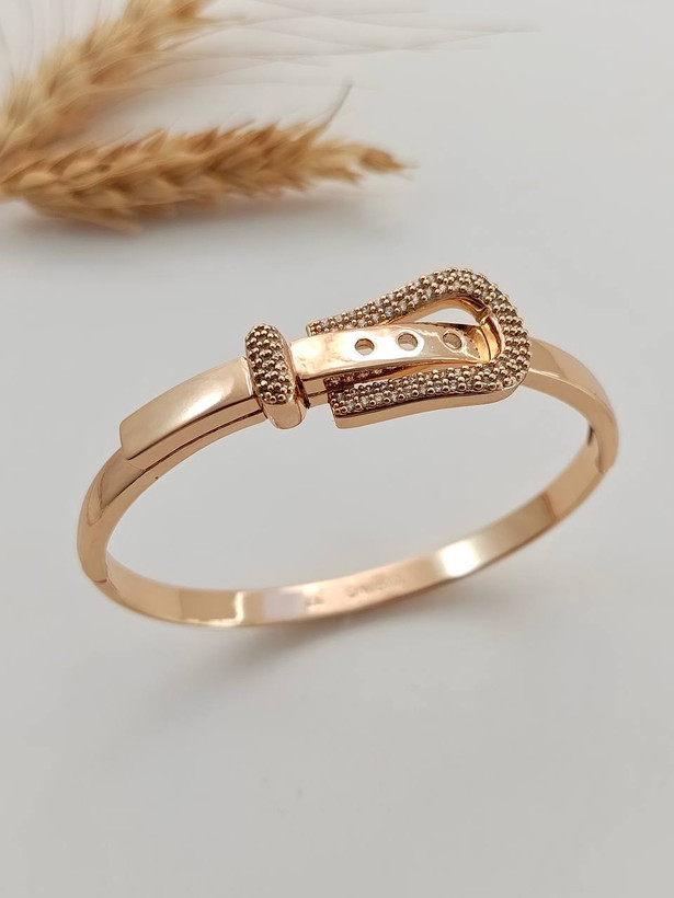 این دستبند با آبکاری طلا ۱۸ عیار ساخته شده و دارای رنگ ثابت، نگین مخراج جواهر و ضدریزش است.