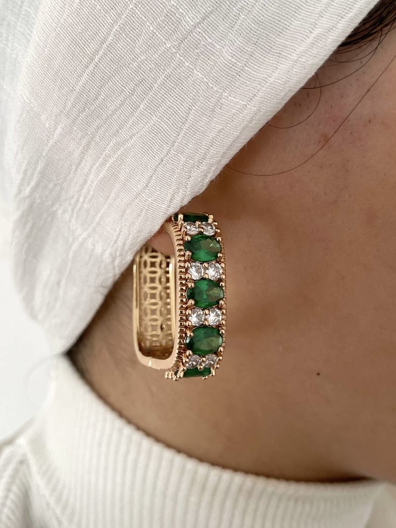 گوشواره زیبای زمردی مربع ژوپینگ ،یکی از لوکس ترین گوشواره های زنانه ست که جلوه ای بسیار شیک و خاص به استایلان میدهد💛