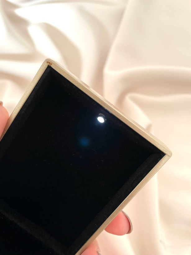 وقتی کاور جعبه را باز می کنید، چراغ آبی رنگی روشن می شود و نور ملایمی به جواهرات شما می تابد. فضای داخلی از پارچه مخملی نرم