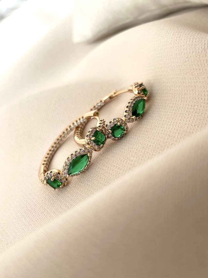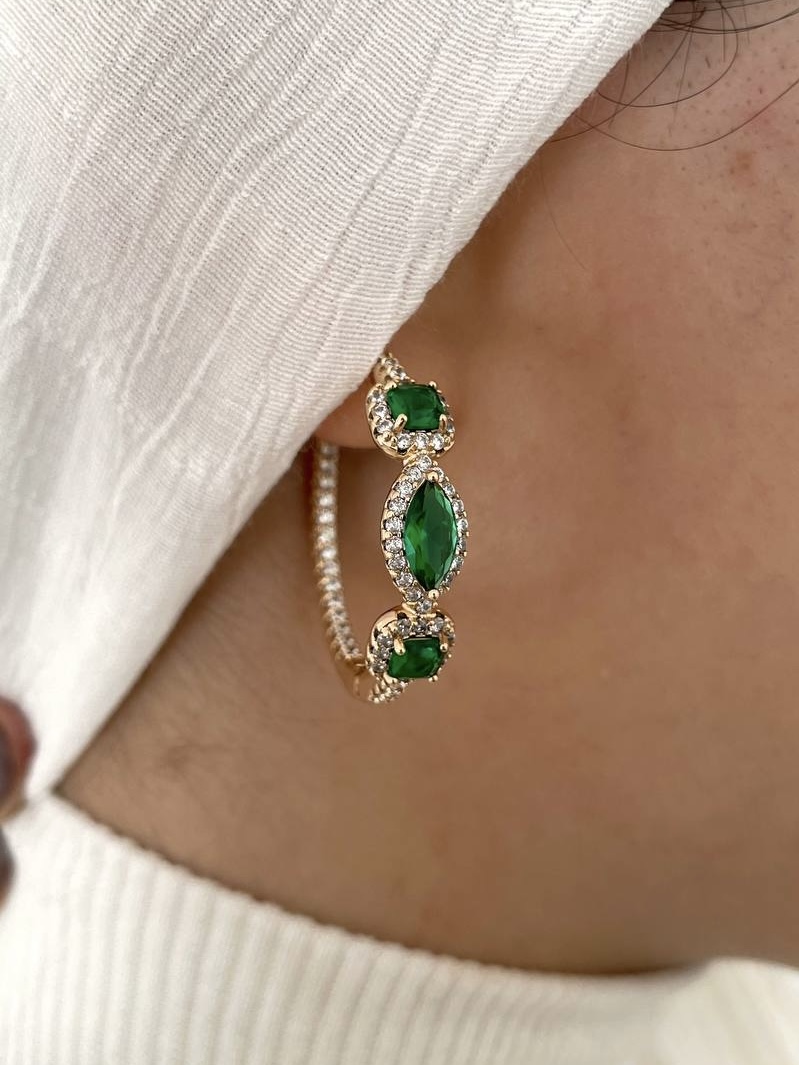 گوشواره حلقه جواهری ژوپینگ با نگینهای زمردی اش چشم همه را به سمتتان خیره میکند😍