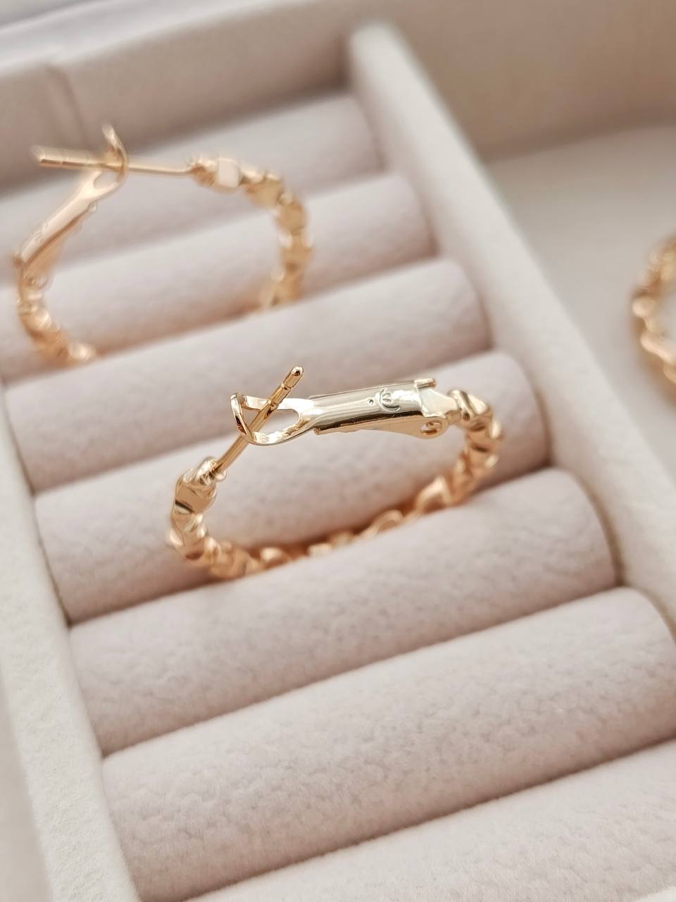 گوشواره حلقه ای شیار دار ژوپینگ یکی از پرطرفدارترین گوشواره هاست که به علت ظاهر زیبا و سلک بودنش هم برای مهمانی و هم برای استفاده دائم و روزانه مناسبه💛